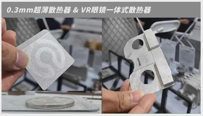 △倍豐科技金屬3D打印0.3mm超薄散熱器,整體厚度僅為0.3mm,內(nèi)含0.15mm冷卻水路,采用自研GA520材料制作,性能尤為卓越。通過(guò)結(jié)合3D打印優(yōu)勢(shì),可在設(shè)計(jì)之初實(shí)現(xiàn)內(nèi)部散熱流道的拓?fù)鋬?yōu)化,以實(shí)現(xiàn)更強(qiáng)的散熱能力,有效解決消費(fèi)電子、先進(jìn)算力、高端芯片等行業(yè)的散熱難題。