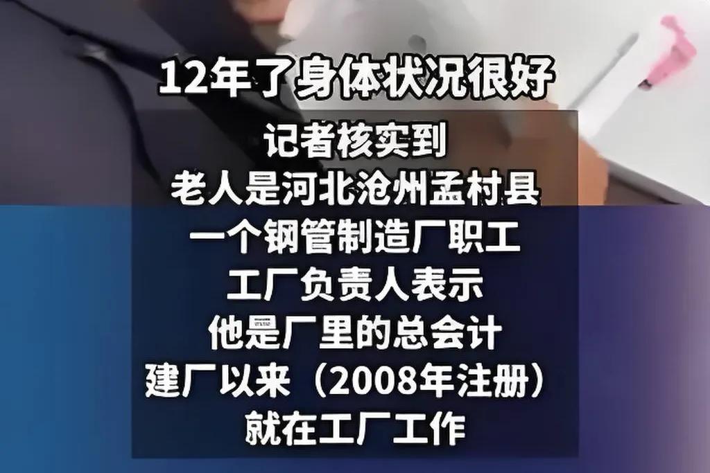 這位75歲的老人是河北滄州某鋼管廠的總會計,2008年建廠時便入職,退休后還自愿返聘,繼續負責進出賬目管理。他上下班時間自由,工廠負責人表示其身體狀況良好,目前每月有養老金和工資雙份收入,展現出對工作的熱忱與堅守。